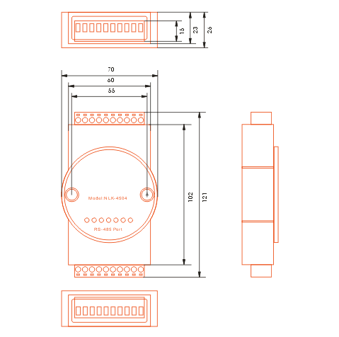 | NLK-408M | 工业级有源RS485/422转RS485/422光电隔离中继器,DC5/9-30V宽压供电,导轨式,壁挂式安装 输入输出电源三端隔离型 |