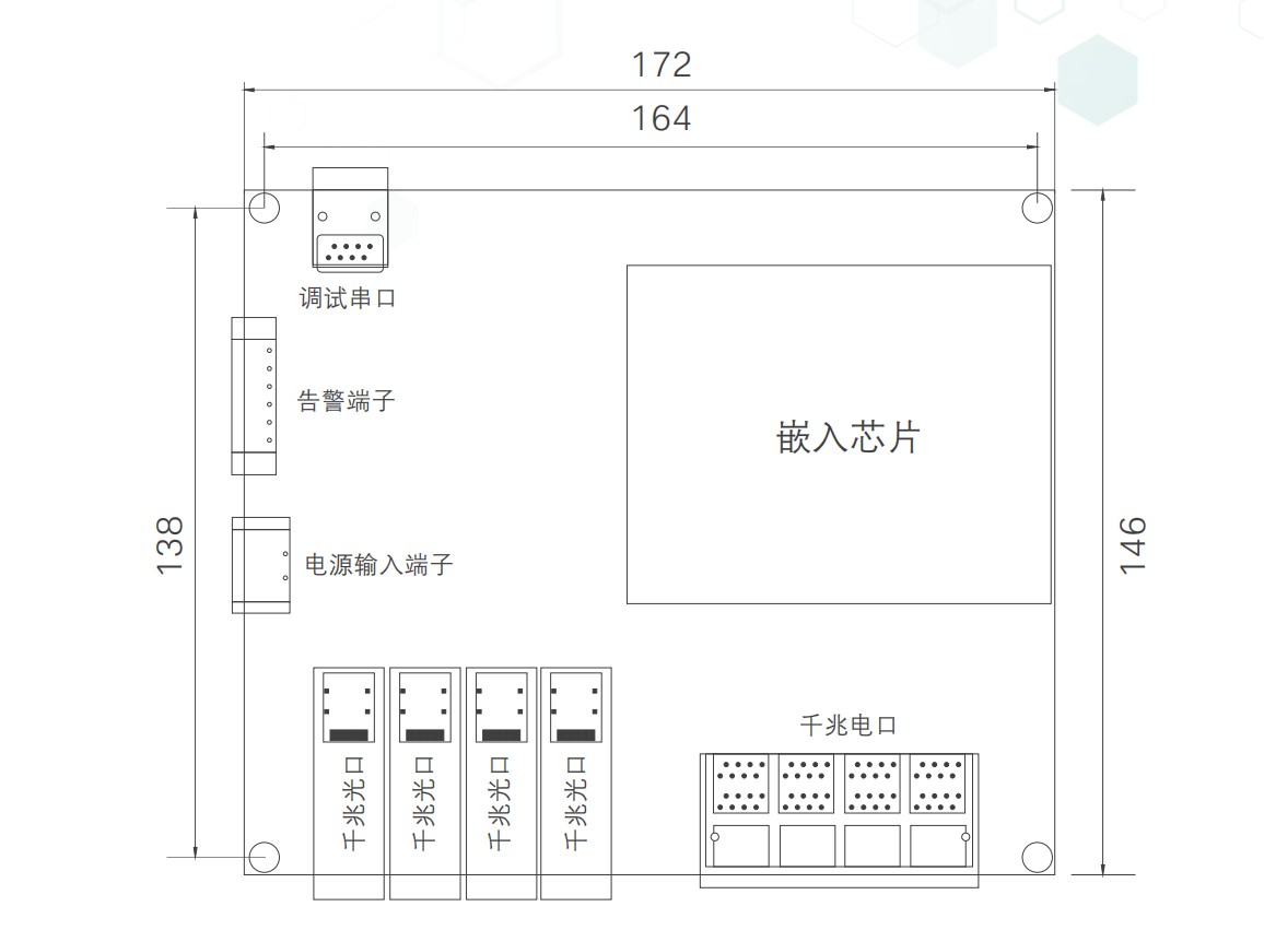 物理尺寸(长×宽×高):172mm×146mm×27mm 安装方式:定位孔安装 |