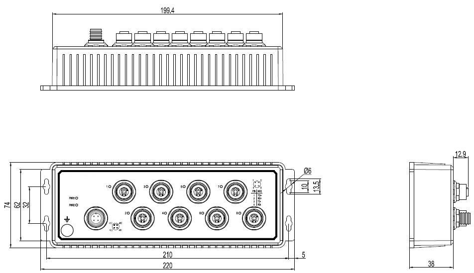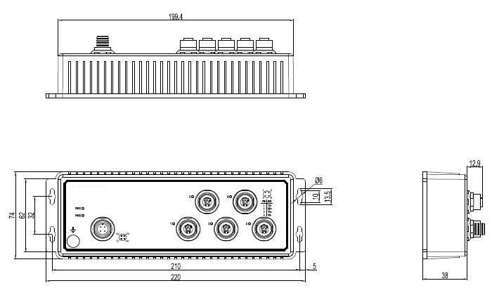 外壳: 金属 散热方式: 自然冷却,无风扇 防护等级: IP65/67 尺寸: 74mm×220mm×50.9mm(W×H×D) 重量: <0.75Kg 安装方式: 壁挂式 |