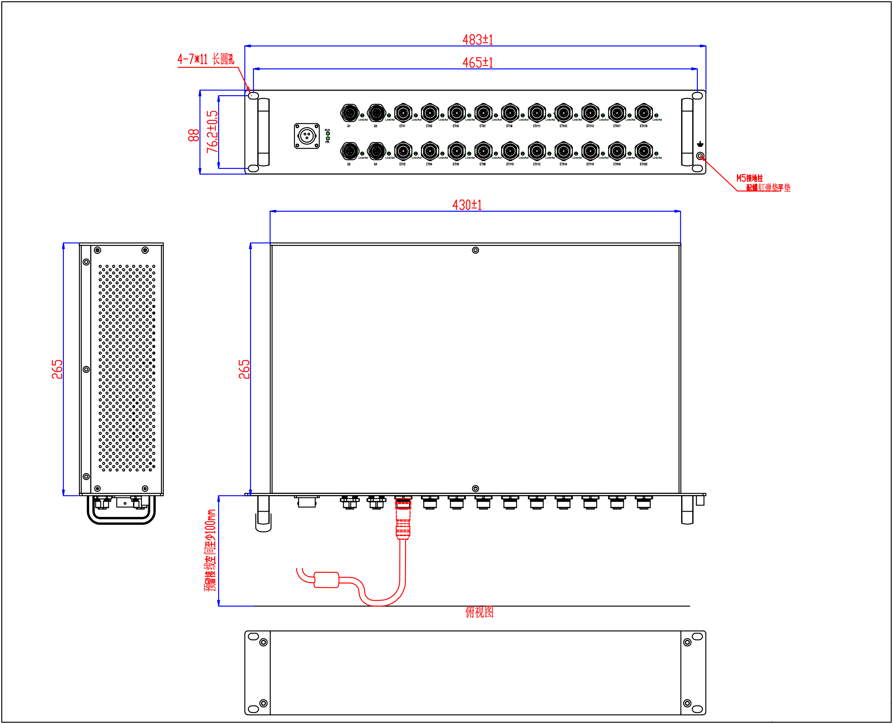 宽×高×深:483mm×88mm×265mm |