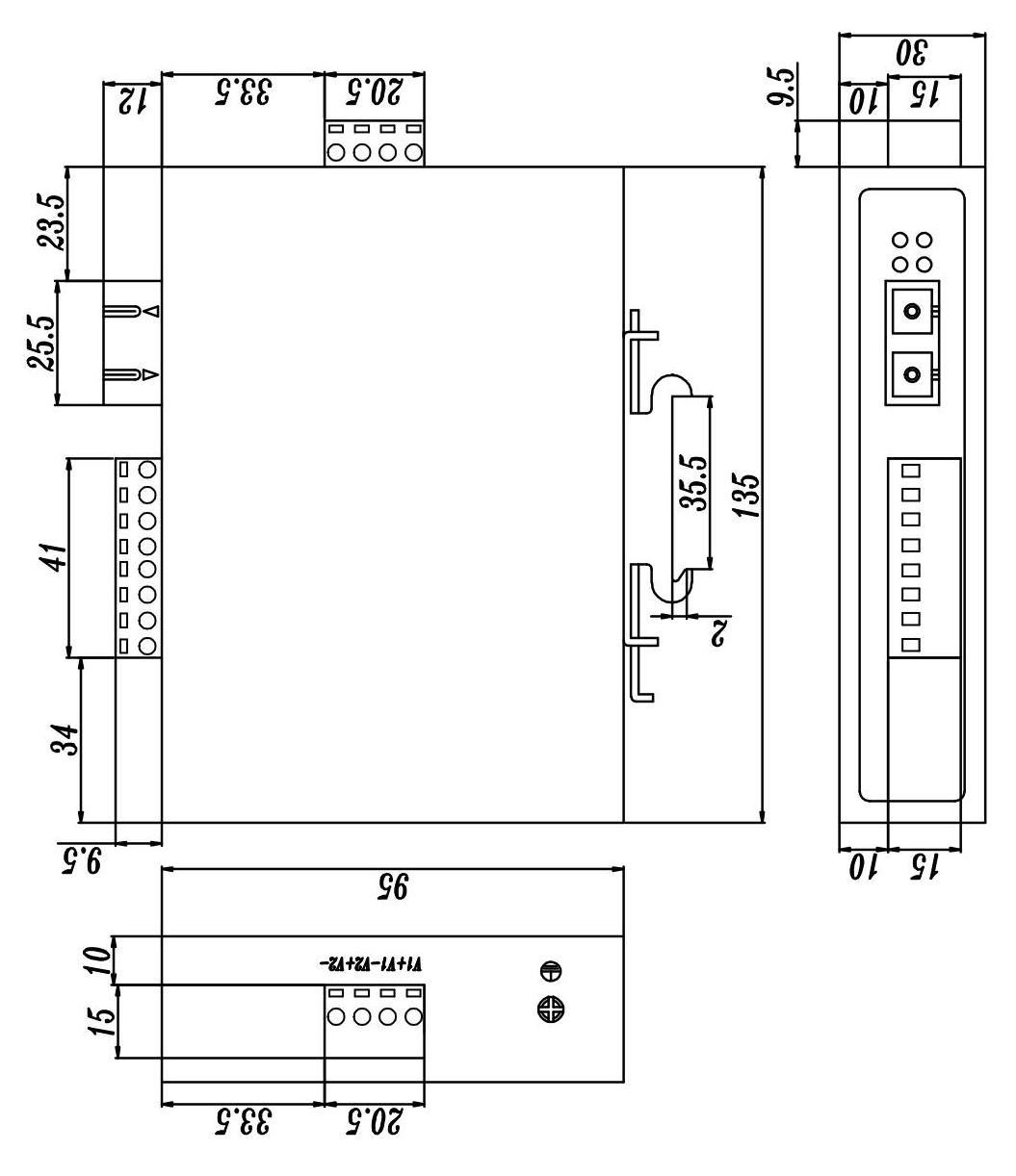 DC9~60V宽压冗余电源供电 | 35MM DIN导轨式安装 |
