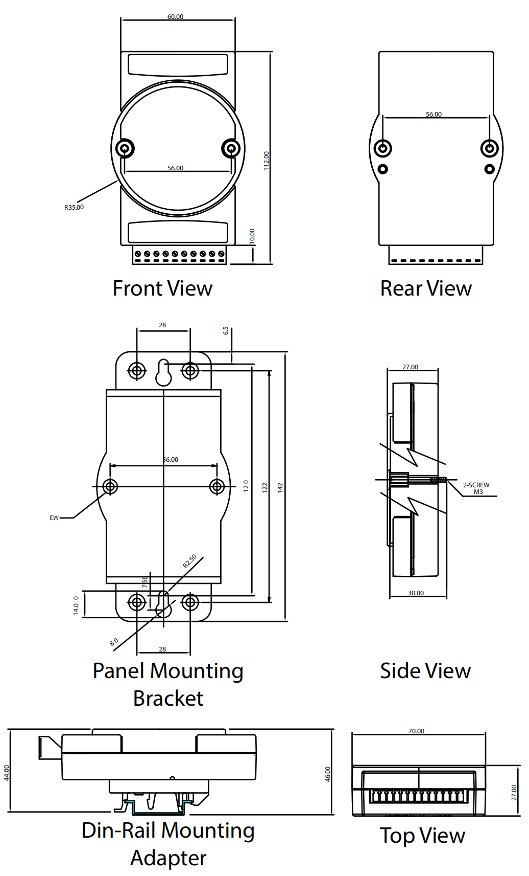 ◆ 支持35mm卡规式安装或者壁挂式定位孔安装;