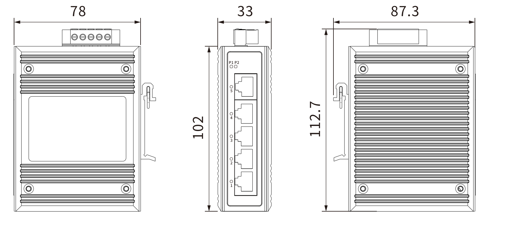 102×33×78(mm)(不含卡轨及连接器尺寸) |