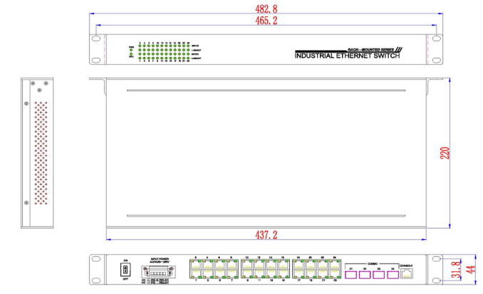 | KLM524G | 20个10/100/1000M电口4个1000M 光电复用SFP扩展槽,电压:AC/DC85~265V可选 |