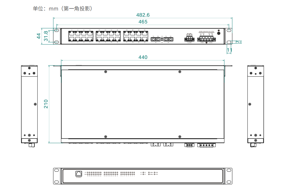 物理尺寸 482.6×44×210(mm)(含挂耳)