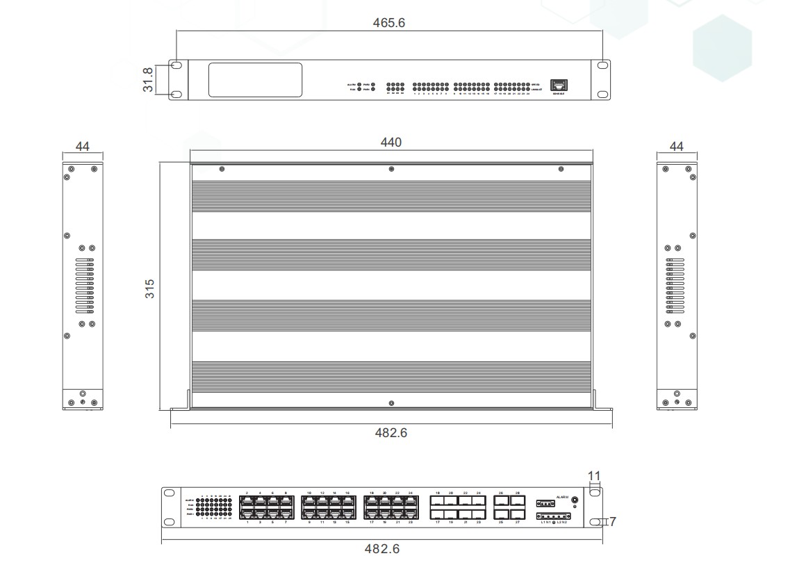 | 物理尺寸 | 482.6×44×210(mm)(含挂耳) |