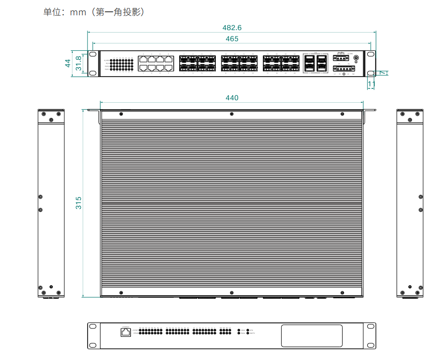 外形尺寸 482.6×44×315 (mm)(含挂耳)